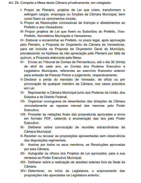 Competências da Mesa Diretora